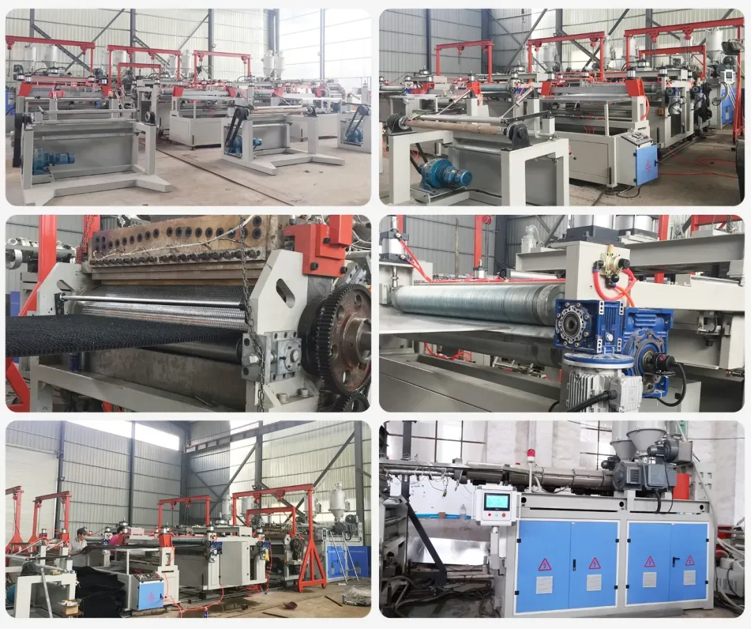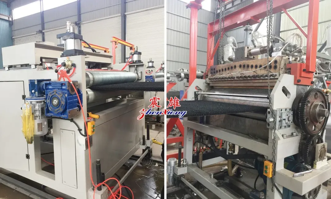 The plastic car fender production line is equipped with two professional plastic grass extruders, ZXSJ-90X33 and ZXSJ-65X33.