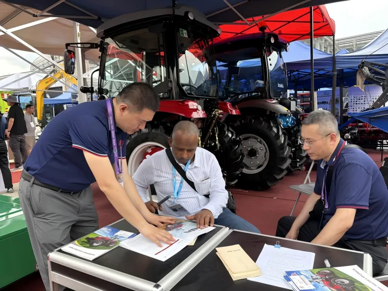 开展当日,悦达展位前客商频频到访,洽谈氛围浓厚。截至目前,累计接待来自非洲、南美、澳大利亚、欧洲、俄罗斯等地区的客商超百批次。公司业务团队紧密结合不同地区农业作业特点和市场需求,积极引导客户聚焦产品优势,推介适配的解决方案。