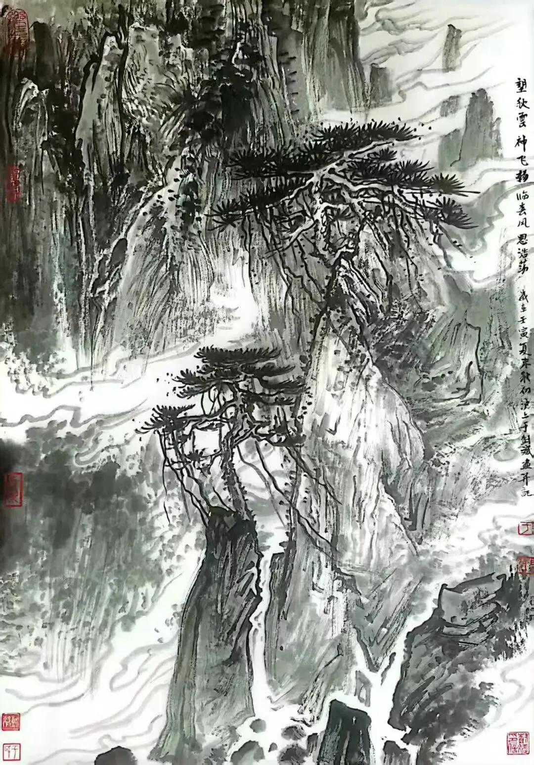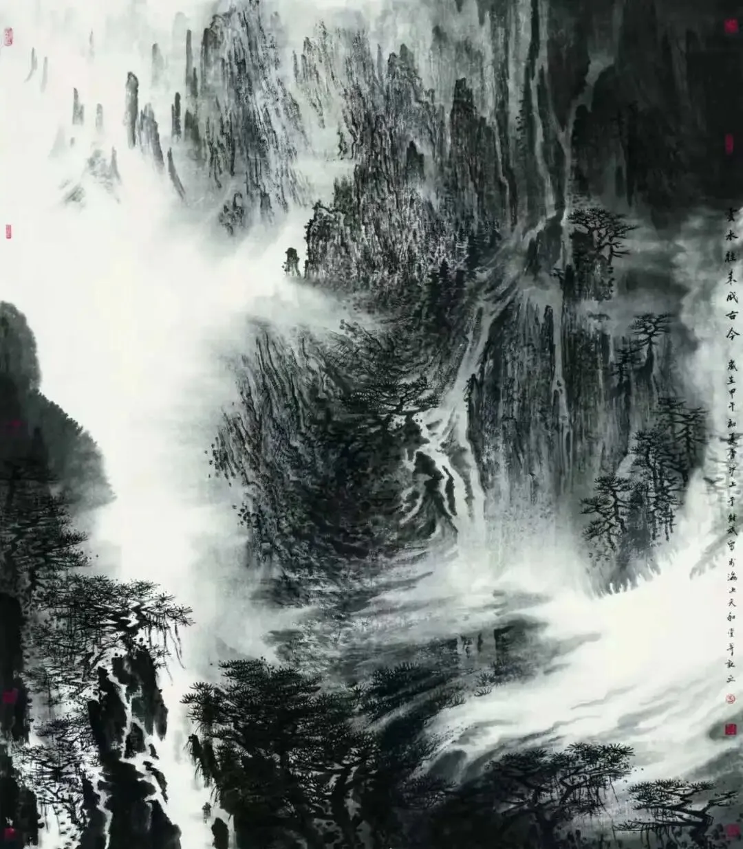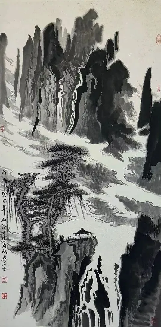于树斌先生专攻山水,笔墨沉厚,气韵苍润。笔下山水或雄浑壮阔,藏天地之气象;或清逸悠远,含林泉之静意。师传统而不泥古,融自然造化与心性修为于一体,墨色浓淡相生,笔法刚柔并济,尽显传统山水的笔墨精髓与人文情怀。