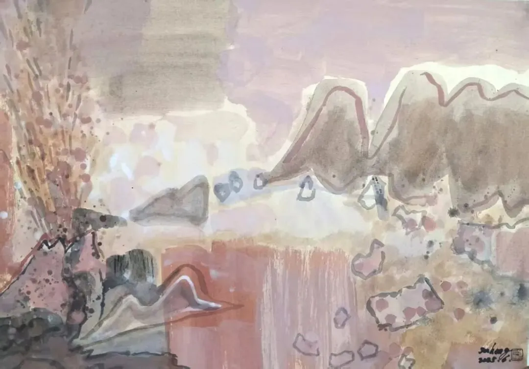 肖素红女士擅写意人物、花鸟与水墨实验,其作不拘成法,既有传统国画的雅致韵味,又具鲜活的时代气息,线条流畅灵动,赋色清雅明快,于方寸之间写世间百态,绘草木生机,笔端尽是对生活的热爱与艺术的赤诚。