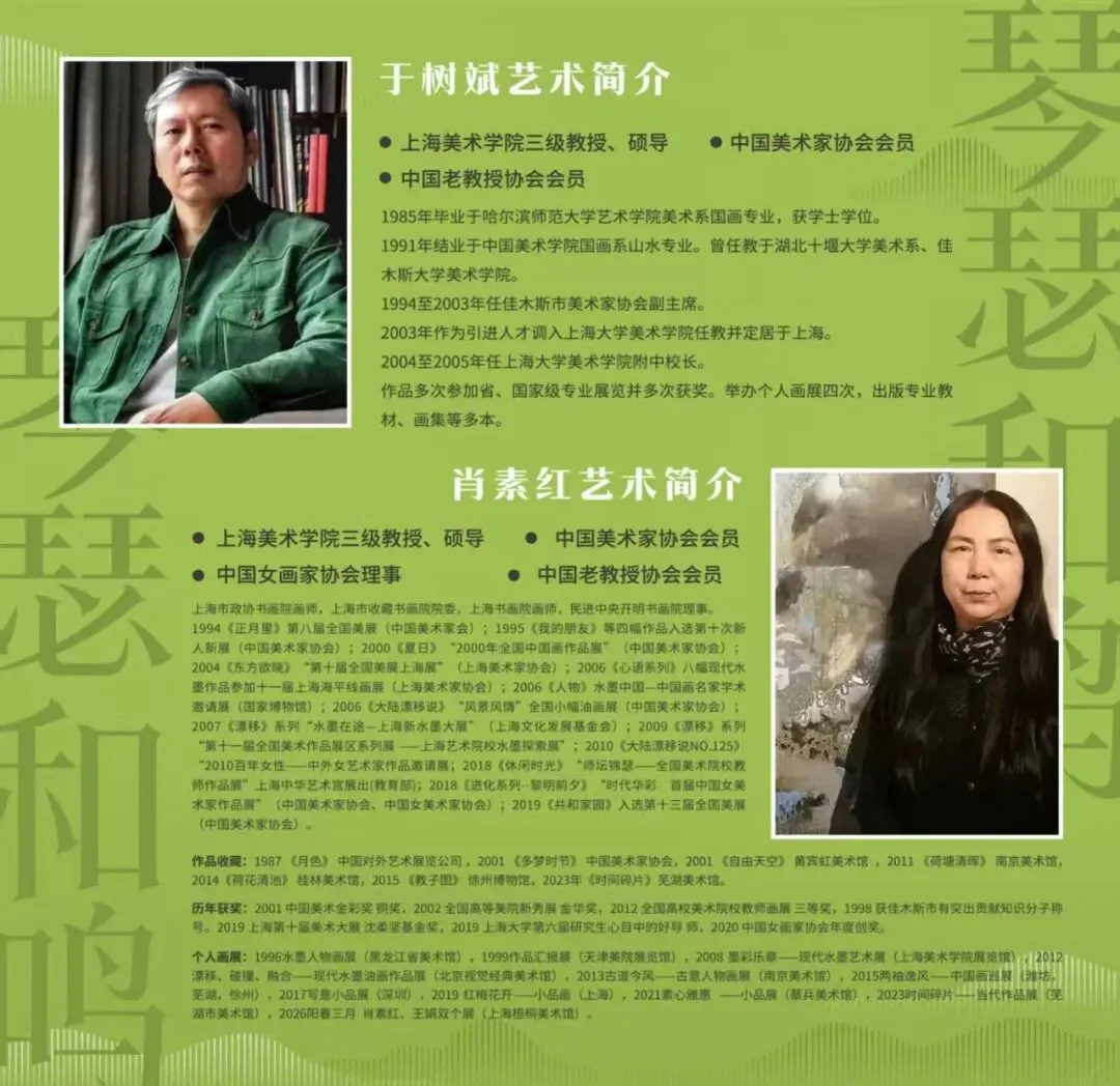 二位先生执教于上海大学数十载,传道授业,桃李芬芳,闲暇之时笔耕不辍,艺术上各有风骨,又彼此滋养,相守相伴间成就艺坛佳话。此次展览,集二人精品佳作,既是半生艺途的沉淀,亦是伉俪同心的见证。