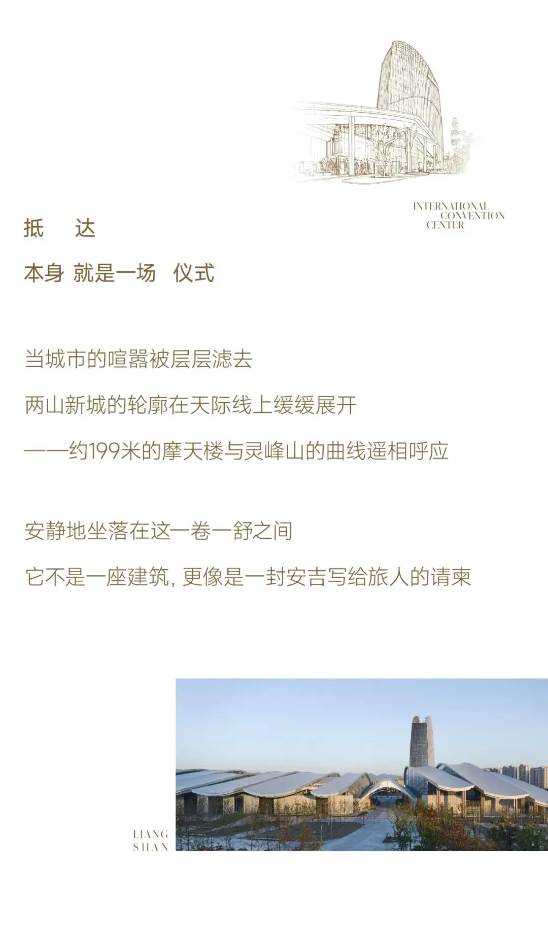 这句问候里,藏着法国何斐德与启迪设计强强联袂的匠心——以“两山会一谷”为原点,从灵峰山与龙山的形态中汲取灵感。建筑不再是土地的侵入者,而是山水的延续:外立面起伏的线条像被风拂过的山脊,屋顶的轮廓呼应着远山的呼吸。