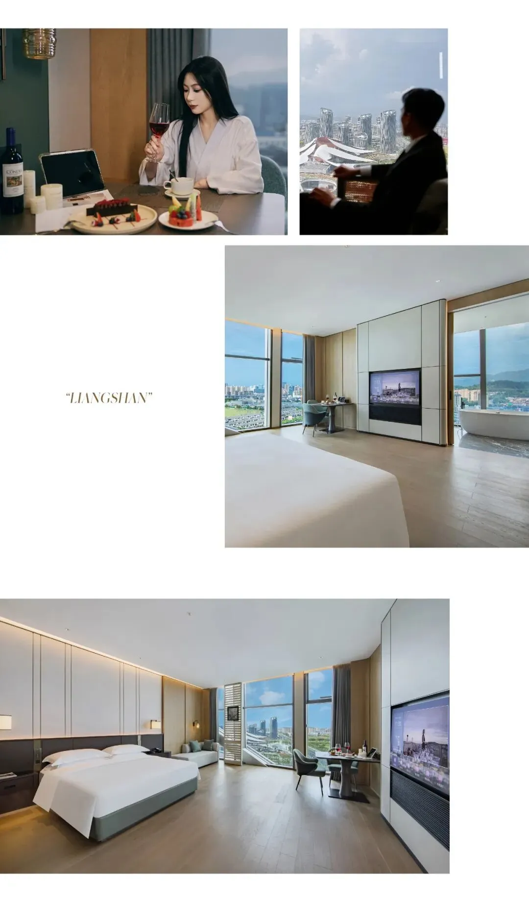316间客房,以木质与咖色铺陈,温润而不张扬。 每一扇窗都像一幅画框:或是新城的灯火,或是远山的轮廓。推门而入的那一刻,奔波与匆忙被留在门外,取而代之的,是一段可以慢慢呼吸的时光。