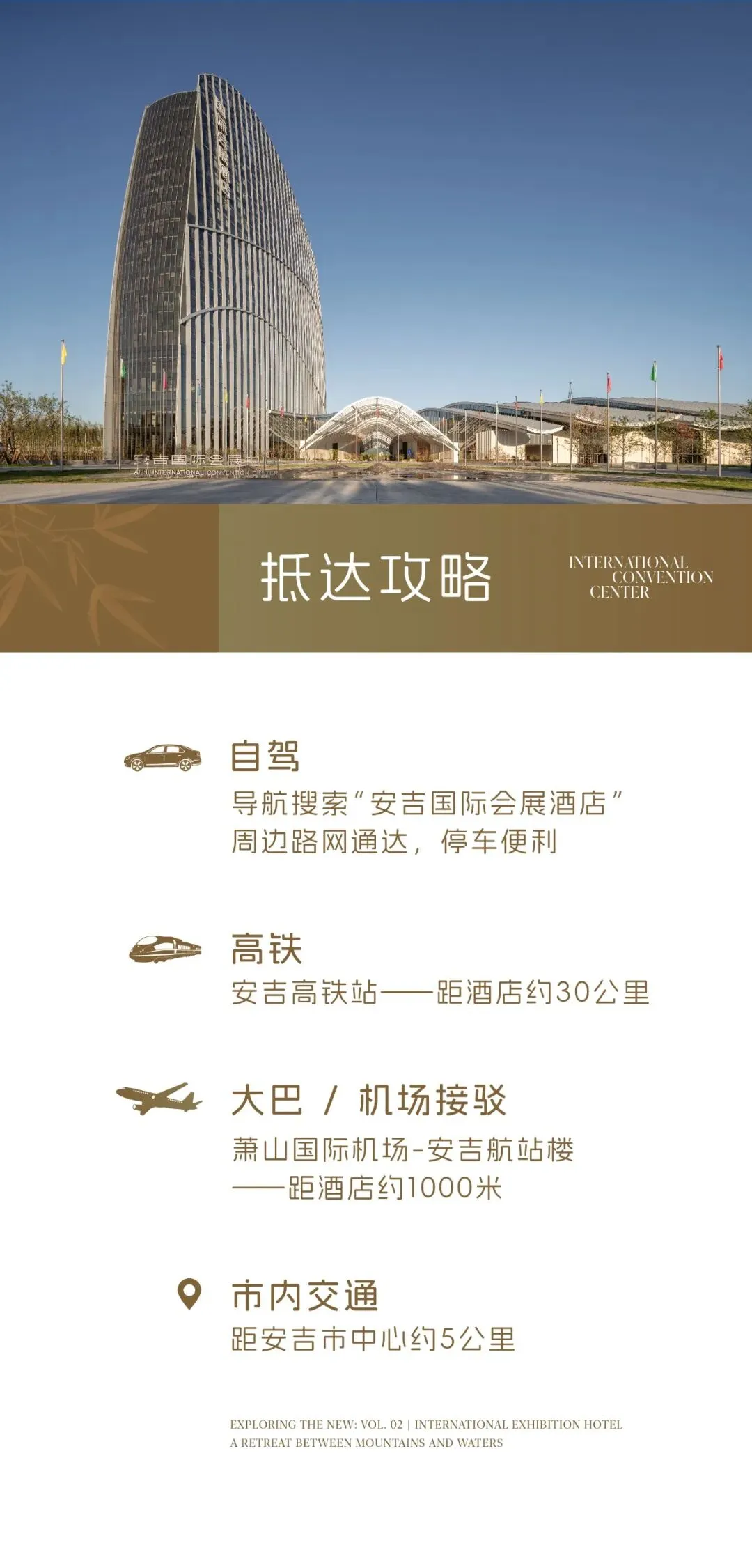 而大堂本身,则让“安吉新韵”四个字有了具体的形状。两山文化的底蕴与现代的精致在此交织——高高的落地窗将天光引入,地面石材的纹理像被溪水冲刷过的河床,空间以抽象的语言诉说着竹与茶的故事。