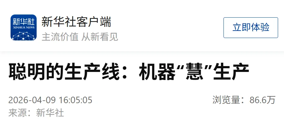 (走进TCL空调九江智能制造工厂,24台工业机器人正协同有序工作,空中立体缆车精准地将各种配件输送到不同的工位,检验包装后的成品空调通过物流轨道自动进入仓库,整个流程顺畅高效,智能化元素贯穿始终。TCL空调(九江)有限公司厂长刘德清说:“这条产线我们先后投了2000多万元,实施数字化转型,这条产线是2025年全新升级上线的,融合了AI技术和工业机器人,实现了从零部件到成品的全流程智能制造。生产效率综合提升了20%以上,产品的不良率下降15%,给我们企业带来了实实在在的好处。”) 数百米长的智能化生产线,平均每7秒就能下线一台空调;地上贴满二维码,AGV小车投料精准又高效;不用人盯岗,智能机器人就能够按照设定完成全部生产工序……近年来,数字赋能让工业生产愈发高效、精准、有序,越来越多的智能化生产线有力提高了企业的生产效率。 位于江西鹰潭的江西中易微连新材料科技有限公司主要生产高端漆包线,记者在生产车间看到,工人只需点击鼠标,整个生产环节就能自动完成,这些自动化生产流程的实现,得益于企业近年来实施的数智化改造。 随着数字技术与制造业深度融合,智能装备、自动化产线、数字管控系统等广泛应用,企业智能化转型的步伐持续加快,制造业数字化水平稳步提升,有力推动产业结构优化升级,为经济高质量发展提供坚实支撑。来源:新华社