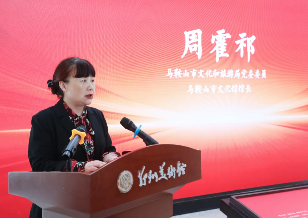马鞍山市文化和旅游局党委委员、马鞍山市文化馆馆长周霍祁在致辞中表示,长江与黄河是中华民族的两条母亲河,黄河厚重苍茫,长江灵动包容,共同哺育了源远流长、博大精深的中华文明。本次展览以“江河同源・长江与黄河文化的对话”为核心,遴选出近百幅书画佳作,尽显中原风骨与江淮气韵,进一步筑牢“江河同源、文明共生”的文化认同。本次联展是马鞍山市文化馆与郑州美术馆合作的开端,也是搭建豫皖艺术交流平台、推动地域文化融合的坚实一步,期待金秋十月在马鞍山举办巡展,持续深化中原与江淮文化交流。