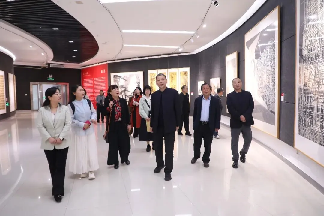 开幕式结束后,到场领导与嘉宾共同在馆前合影留念,随后移步展厅参观展览作品。