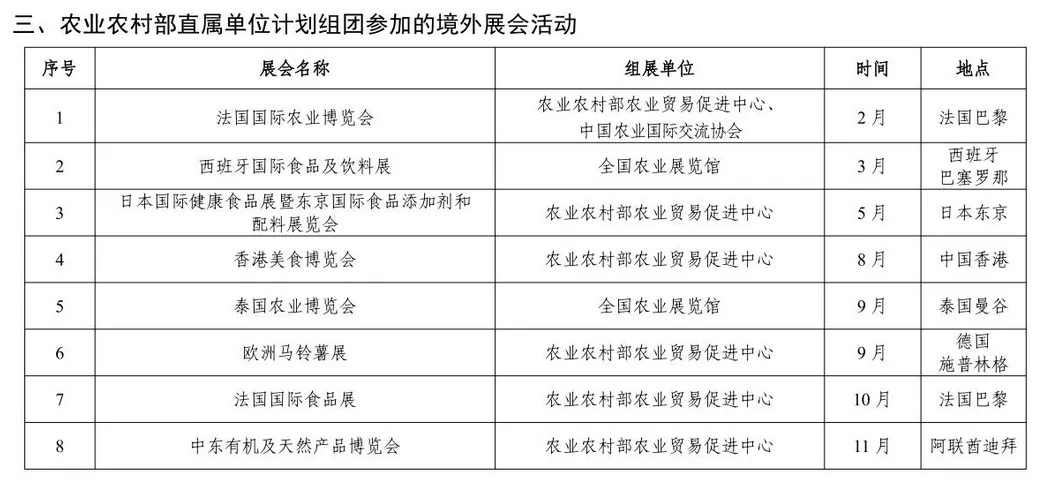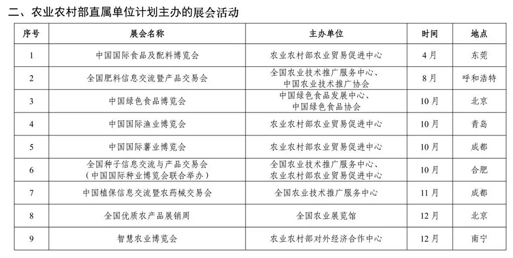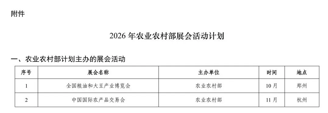 附件:2026年农业农村部展会活动计划