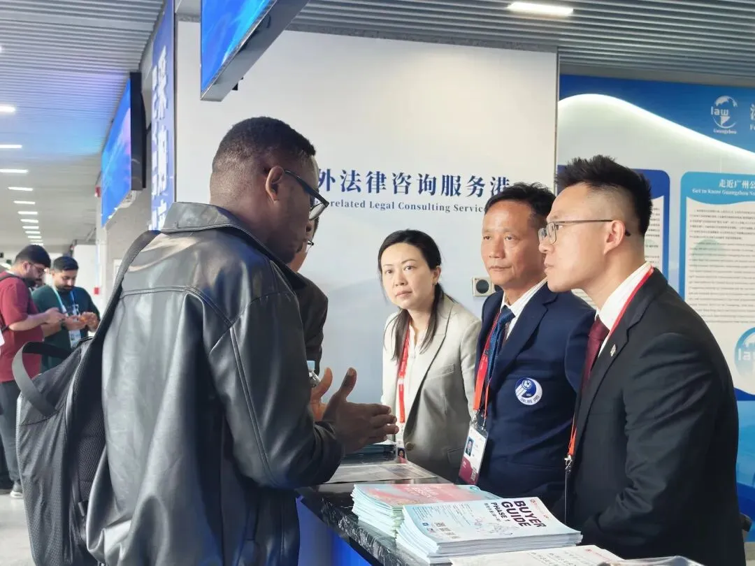 广交会现场,涉外法律咨询服务港工作人员为海外客商提供咨询服务