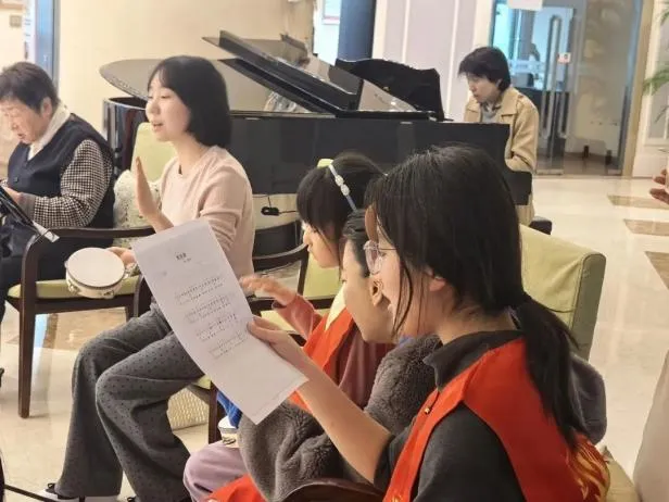 为弘扬敬老、爱老、助老的传统美德,街道团工委联合中央音乐学院、新华书店总店,架起青少年与长者的沟通桥梁。小志愿者们走进国投健康长者公寓,与老年合唱团成为了“忘年交”,大家一同学习演唱技巧、体验互动游戏,以音乐为媒,让爱与志愿精神在歌声中传递。