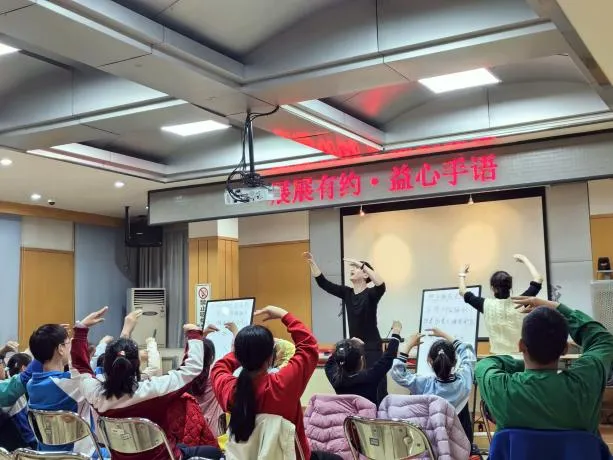 此外,街道还引导青少年进一步弘扬“奉献、友爱、互助、进步”的志愿精神,常态化组织开展“展展有约·益心手语”系列课程,邀请专业老师带领青少年志愿者学习基础手语、练习手语演绎歌曲。“我今天帮一位残疾朋友指了路,还看懂了他用手语对我说的‘谢谢’!”课堂上,志愿者小朋友兴奋地和老师分享自己的喜悦。这种寓教于乐的形式,不仅培养了孩子们的社会责任感,更播下了善与爱的种子。