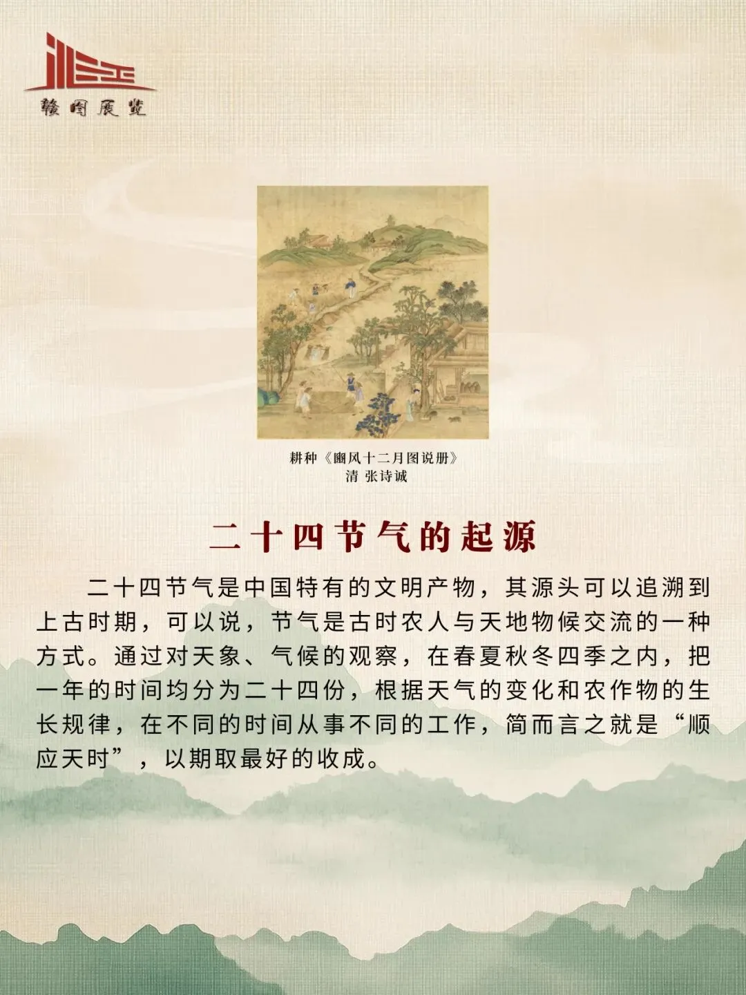 本次展览以二十四节气为主线,带你感受四季变化、民俗风情与传统韵味,在自然节律里,读懂中国人传承千年的生活智慧。