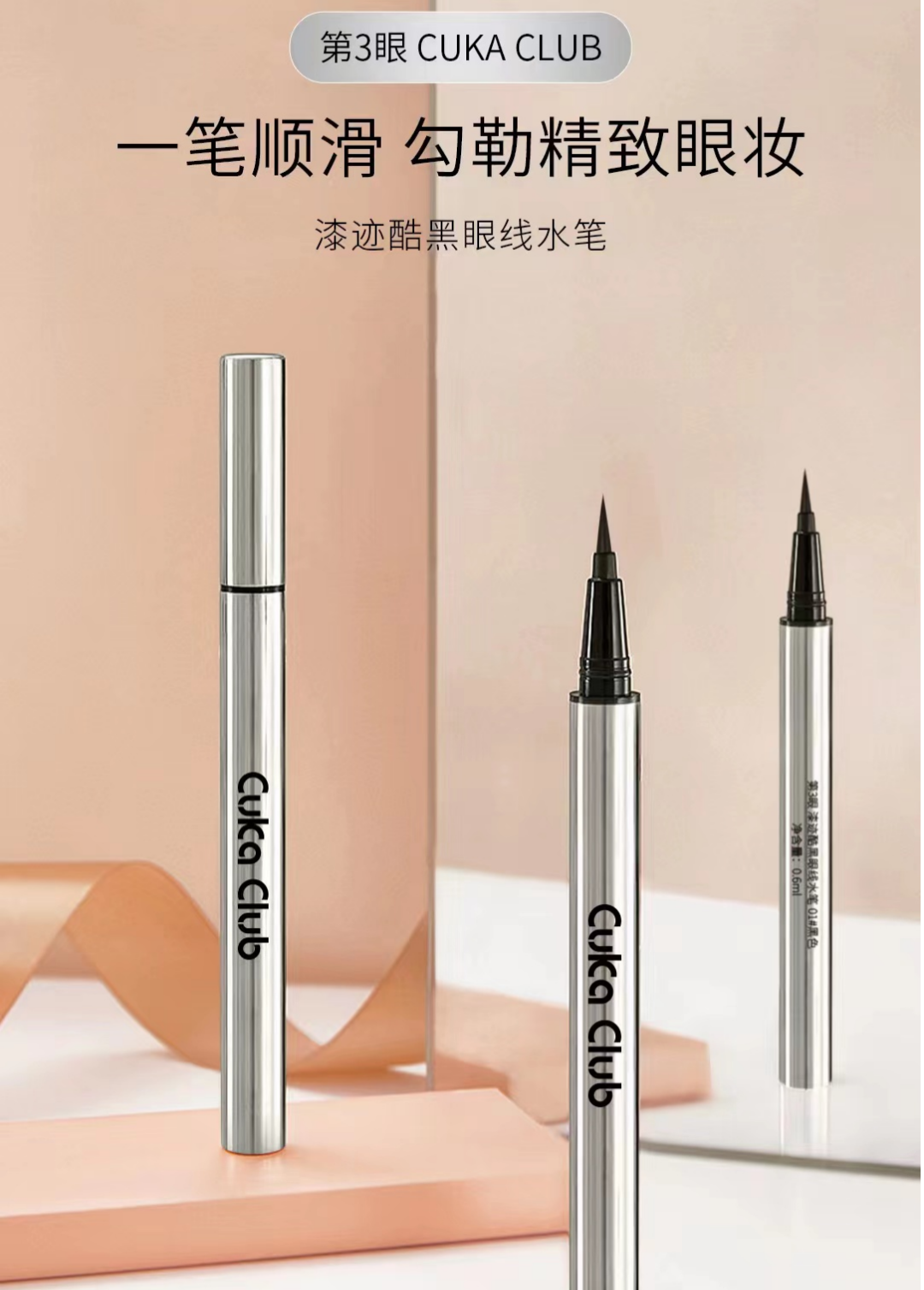 5、漆迹酷黑眼线水笔,0.1MM纤细笔尖,下笔精准一笔成型,上眼速干不易晕染,升级锁水供水管道,出水流畅不漏墨。