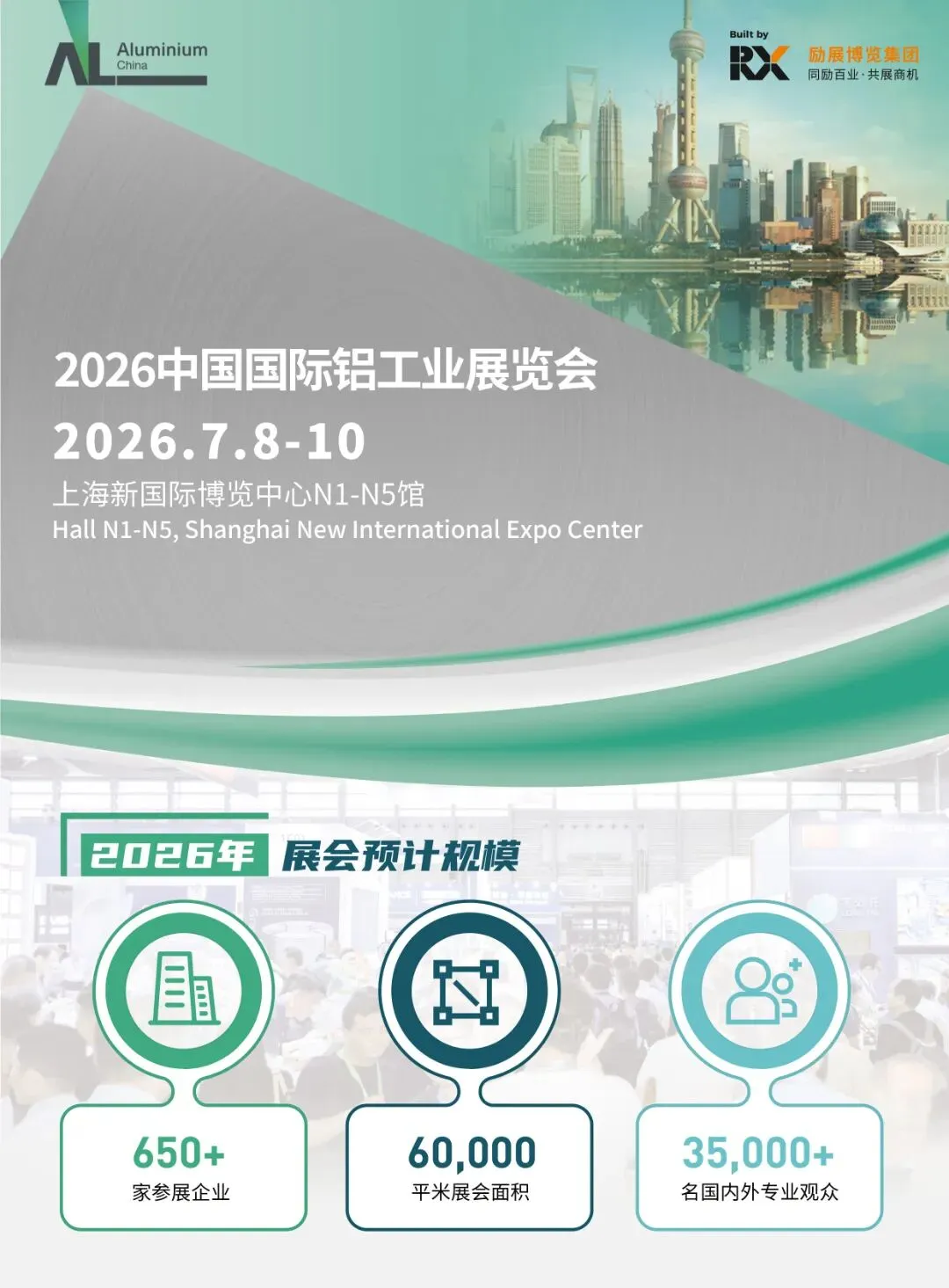 历经二十载深厚积淀,作为行业发展引领平台,第21届中国国际铝工业展览会将于2026年7月8-10日再次登陆上海新国际博览中心N1-N5馆,以“五展同期、全球链接、资源共享、新赛道引领”为核心亮点,打造有色金属全产业链的高规格国际盛会,助力全球行业同仁冲破困局、共赢发展。