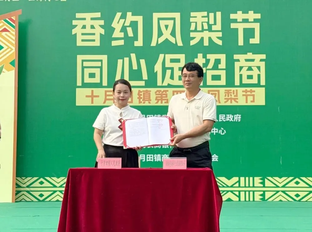 4月15日上午,以“香约凤梨节,同心促招商”为主题的十月田镇第四届凤梨节暨招商推介会在该镇好清村委会启幕,进一步提升十月田镇农业品牌影响力,增强招商吸引力,为全镇产业发展拓宽路径、积蓄动能。活动现场,十月田镇与相关企业签订2个合作项目。