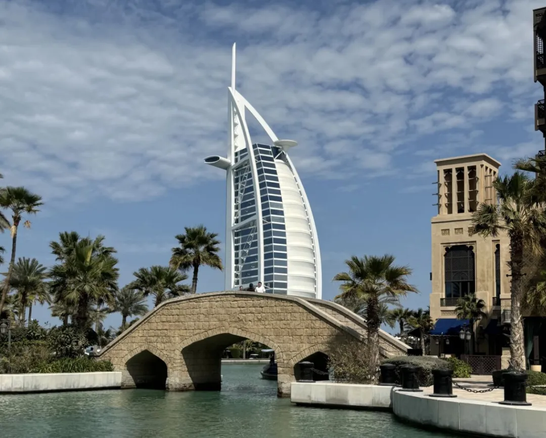 2025年2月16日,在阿联酋迪拜拍摄的地标性建筑帆船酒店。温新年摄(新华社)