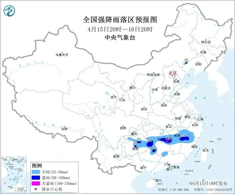 ■中央气象台15日发布暴雨蓝色预警:15日20时至16日20时,贵州中东部、湖南中部和西南部、江西中部、浙江西南部、福建西北部及广西东北部、广东西北部等地部分地区有大到暴雨,其中,湖南中部、江西中部等地局地有大暴雨。