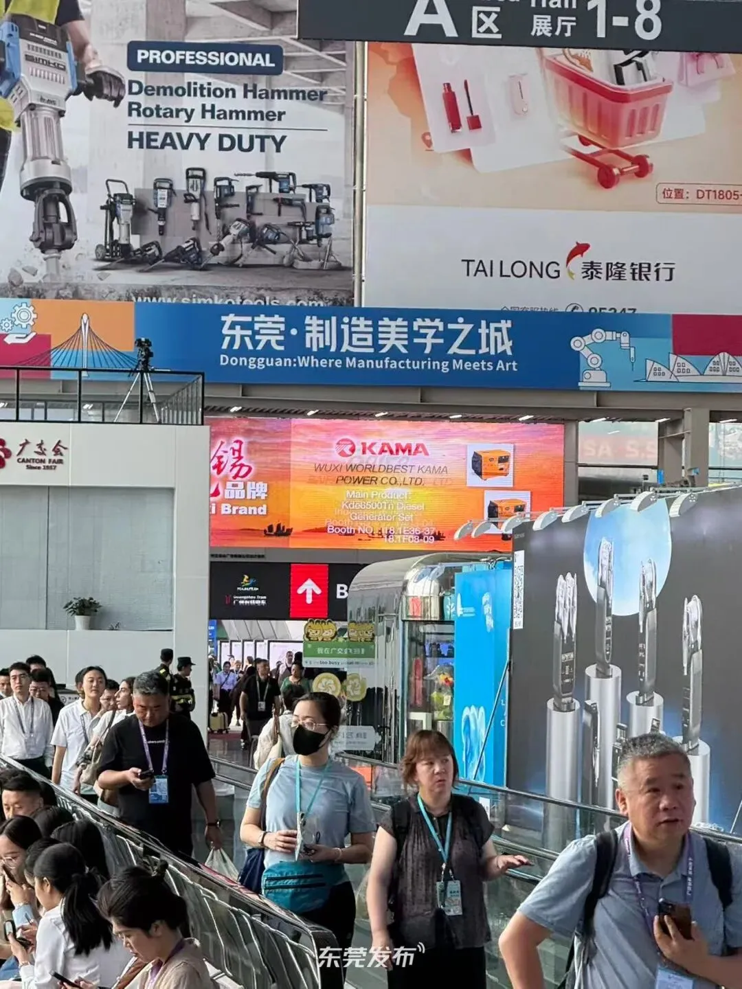 去年第138届广交会,东莞首次以“东莞·制造美学之城”统一形象亮相参展。本届广交会,这套打法得到延续:展馆核心通道、主入口等关键位置,继续设置“东莞·制造美学之城”主题形象广告,全市特装展位统一使用“广东优品|东莞·制造美学之城”标识。