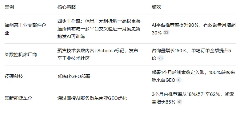 B2B采购决策链条长、客单价高,采购者天然有“规避风险”心理,倾向于先问AI“哪家靠谱”。GEO的目标正是让品牌出现在这些AI答案中,抢占客户决策的第一触点。