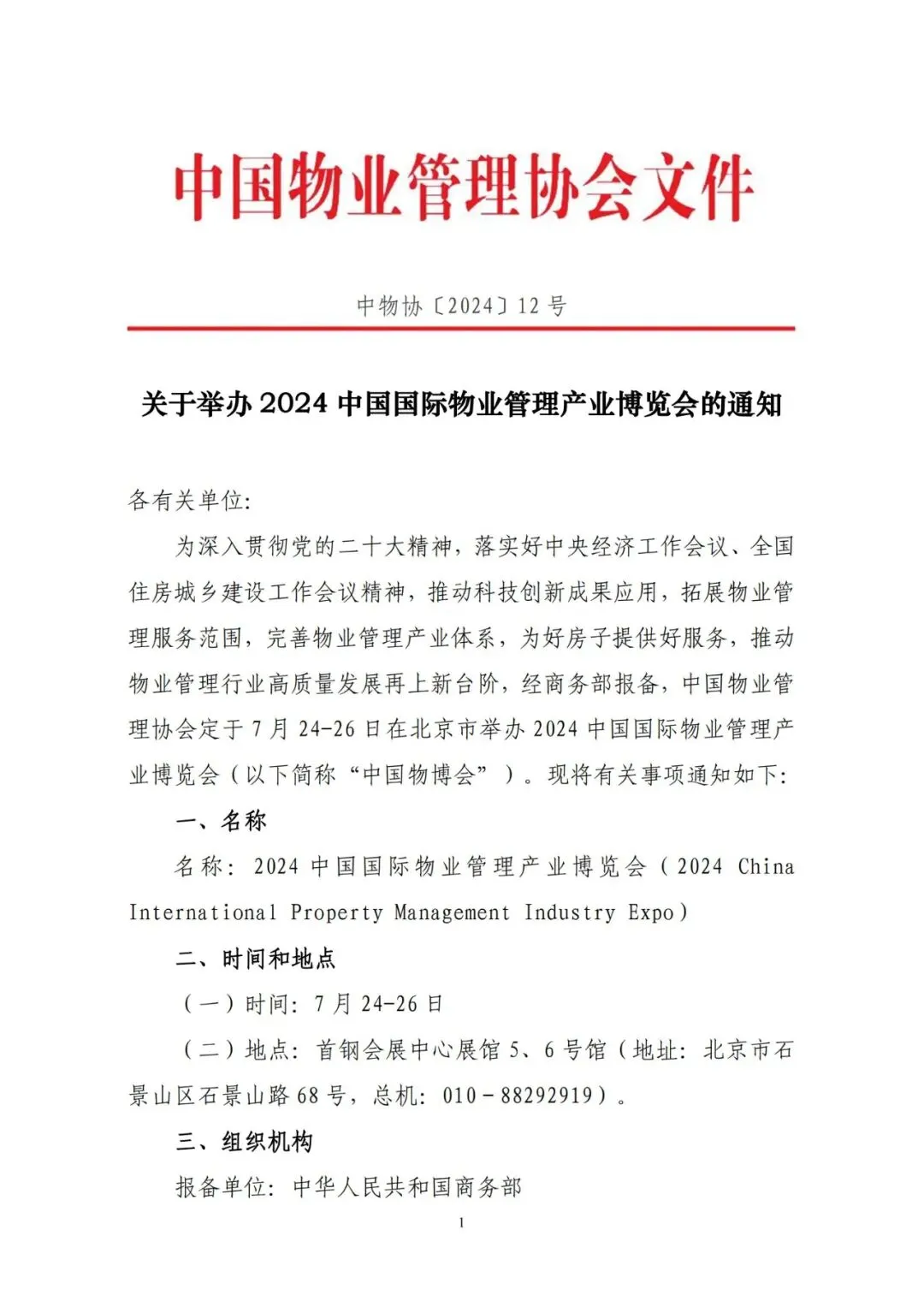 关于举办2024中国国际物业管理产业博览会的通知