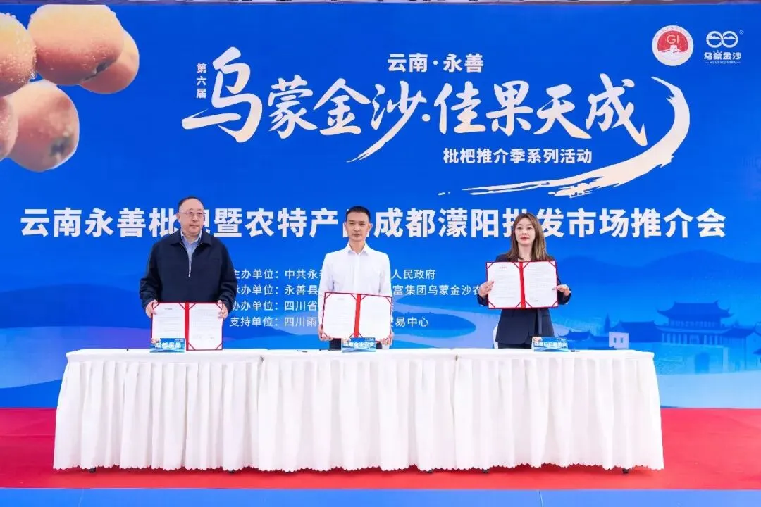 活动现场,永善县乌蒙金沙农业开发投资有限公司与我中心入驻企业——成都市果品有限公司、成都市口口脆果业有限责任公司签署采购合作协议,标志着永善枇杷正式稳定进入川渝核心市场。