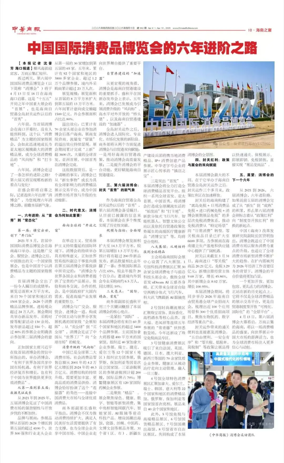 美国《中华商报》对消博会的报道
