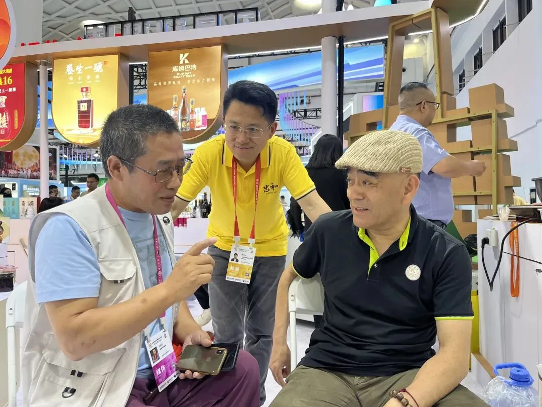 在国货精品展区,来自湖北房县的忠良品牌黄酒以其独特的文化底蕴和醇香口感吸引了众多采购商驻足品鉴。北京忠和房县生物食品有限公司董事长王忠朝亲自坐镇展位,向客商推介房县黄酒。