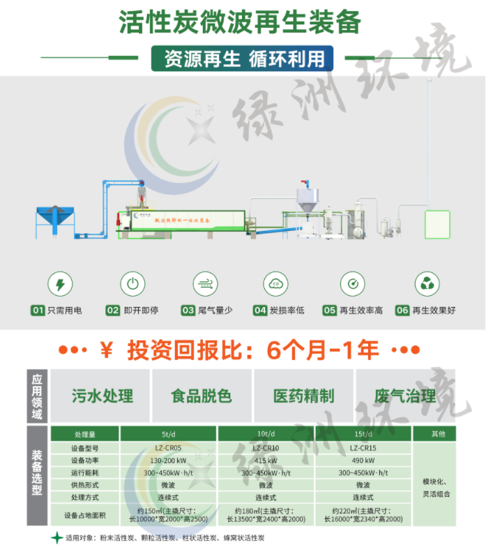 (11)应用在活性炭再生领域,活性炭微波再生一体化装备具有以下特点:再生效率高,再生时间短,炭损率≤10%,吸附容量恢复率≥90%。