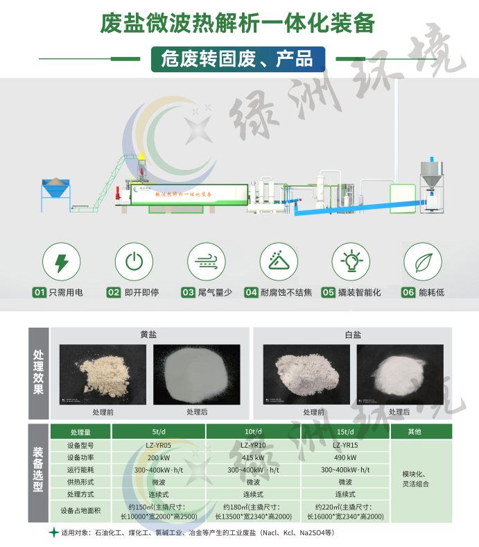 (12)应用在废盐处置领域,废盐微波热解一体化装备具有以下特点:设备不结焦、不结块,管道不堵塞、耐腐蚀,处理后固体盐toc可降至10ppm以下,满足进入离子膜制备烧碱的toc指标限值要求。