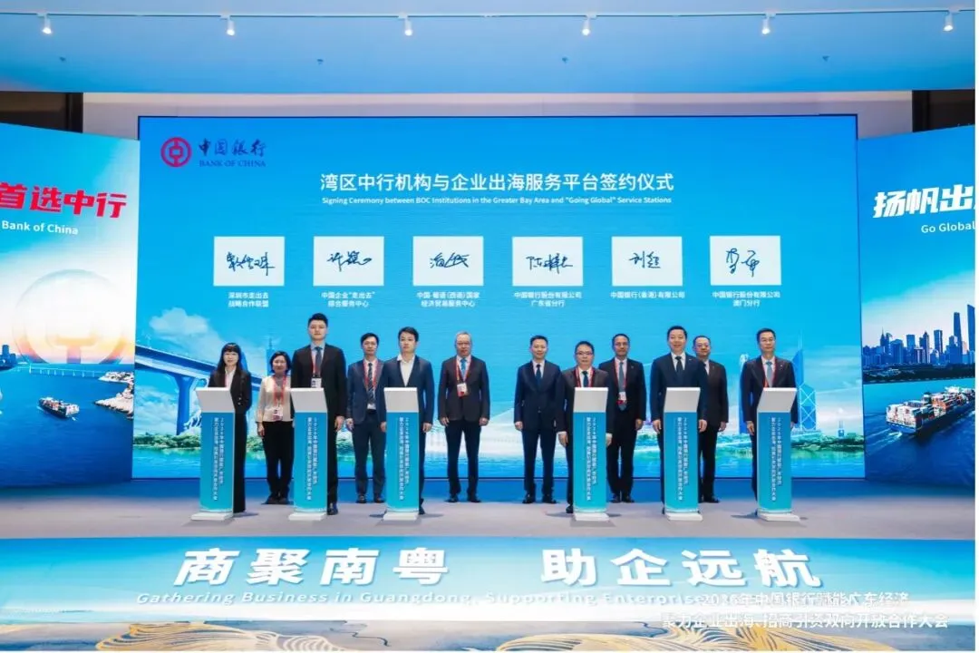 在2026年中国银行赋能广东经济·聚力企业出海、招商引资双向开放合作大会上,“走出去”服务中心与中国银行广东省分行及中国银行港澳分支机构进行签约,进一步扩展“走出去”服务中心协同港澳的服务网络。