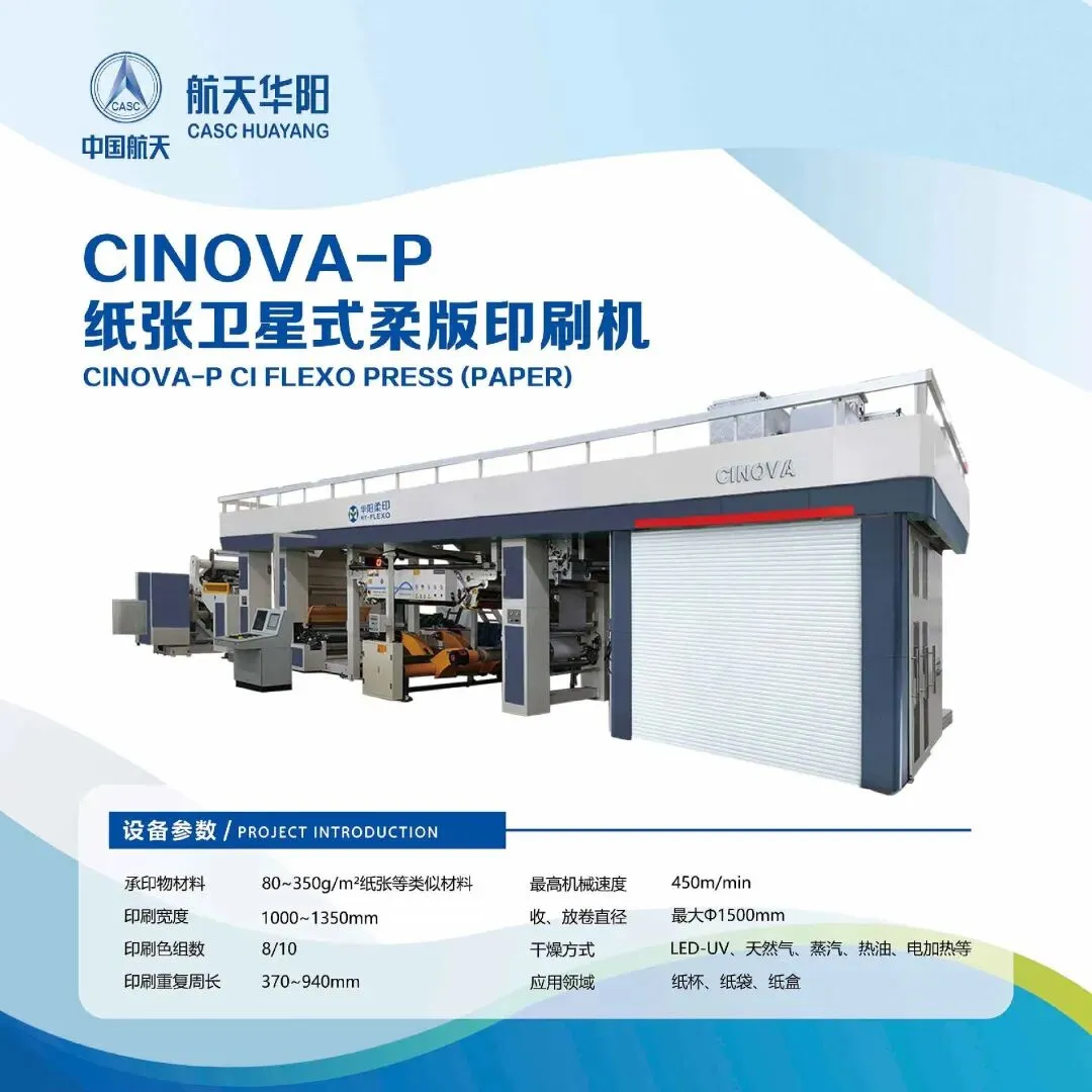 Cinova-P系列机型主要面向纸盒、纸杯、餐盘纸等纸张类市场,换单便捷,针对不同厚度纸张及工艺需求配置对接接料、光油色组、UV/EB固化单元、陶瓷电晕、压痕模切、裁边分切单元等,卫星式柔印机水性印刷+无塑纸张涂布机在纸张食品包装领域实现了绿色生产。