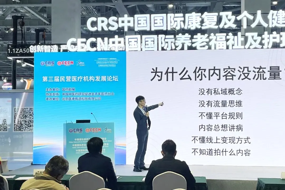 接下来,医承有道科技运营总监、医承有道医馆运营总监董浩发表《医生IP赋能民营医疗高质量发展》主题分享。他强调,线上流量已成为民营机构获客的核心战场,公立医院与头部医生的双重虹吸下,医生 IP 是民营机构破局的关键抓手。董浩详细拆解了医生 IP 从账号搭建、内容创作、公域引流到私域转化的全链路方法论,结合 AI 工具赋能,帮助机构低成本打造医生个人品牌,实现门诊量与品牌影响力的双重提升。