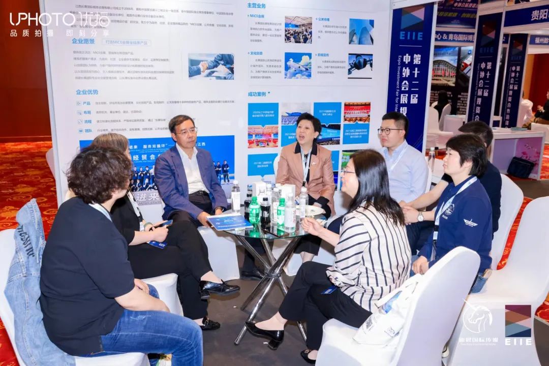 江西省会议展览业协会会长李宇、副会长兼秘书长罗群在江西长青国际商务会展有限公司展区交流座谈。卢立珉董事长首先对协会组织本次活动表示感谢,通过参与这次活动,充分展示了公司的企业形象,更加深入地了解了行业发展趋势,在展会现场与众多全国主办及同行充分交流,沟通合作意向,收获满满。同时她也希望后续有更多的机会参与协会组织的此类活动。