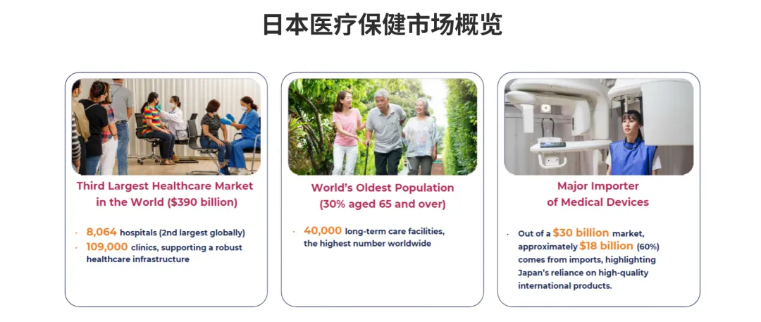 日本是全球第三大药品市场、第四大医疗器械市场,深度老龄化驱动刚性需求,同时医保控费、监管严格,为中国企业提供了 “高性价比替代 + 技术升级 + 供应链补位” 的多重机遇。