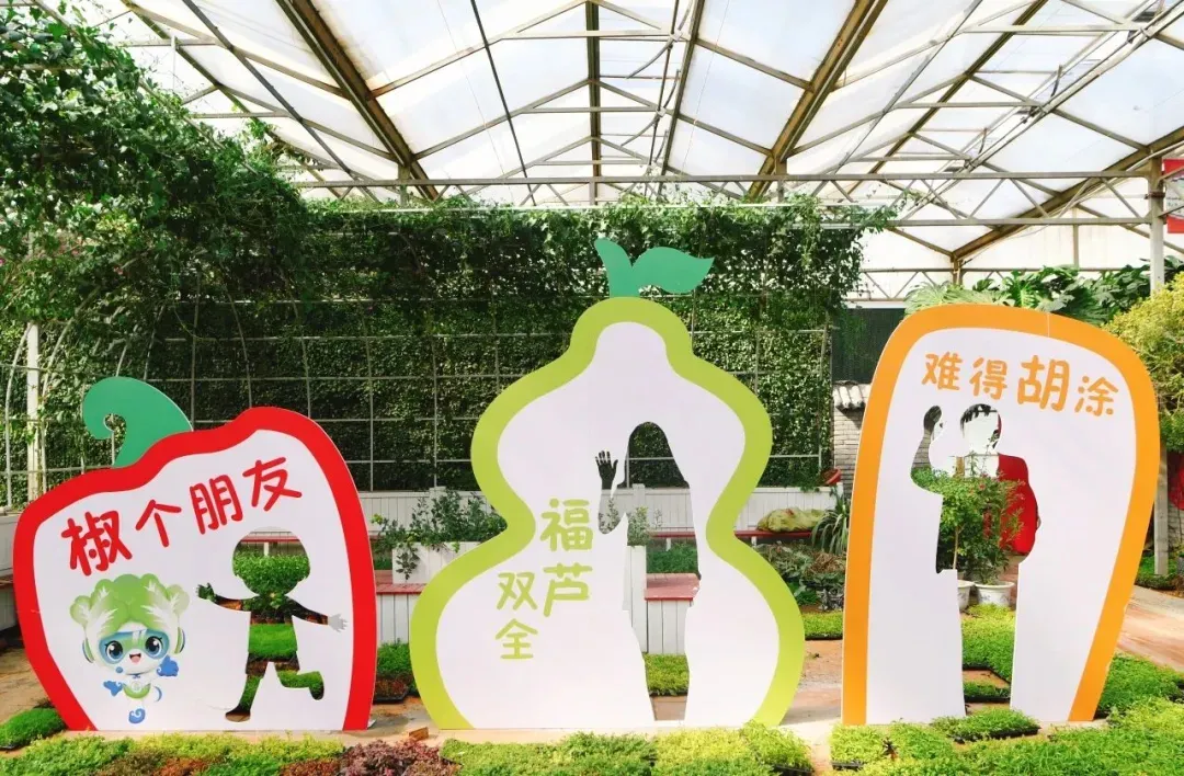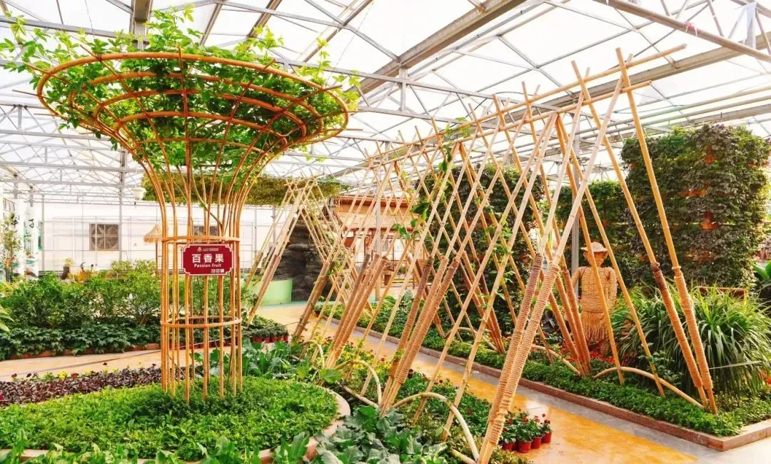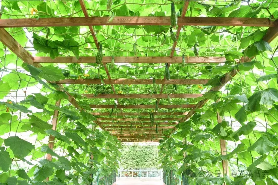 面积10000平方米,为蔬菜实用技术展示馆。选取多个优良蔬菜品种,运用高效立体栽培模式,使用水肥一体化、人工补光、AM菌土壤修复等20多项新技术,展现廊架园艺特色,满园叠翠,硕果累累。中间核心区打造“菜乡农圣”景观,展示农圣贾思勰和《齐民要术》记载的部分蔬菜。西区为“药蔬同源”功能性蔬菜种植区,300多种中药蔬菜种植融合中医药文化,搭建面向大众的科普平台。