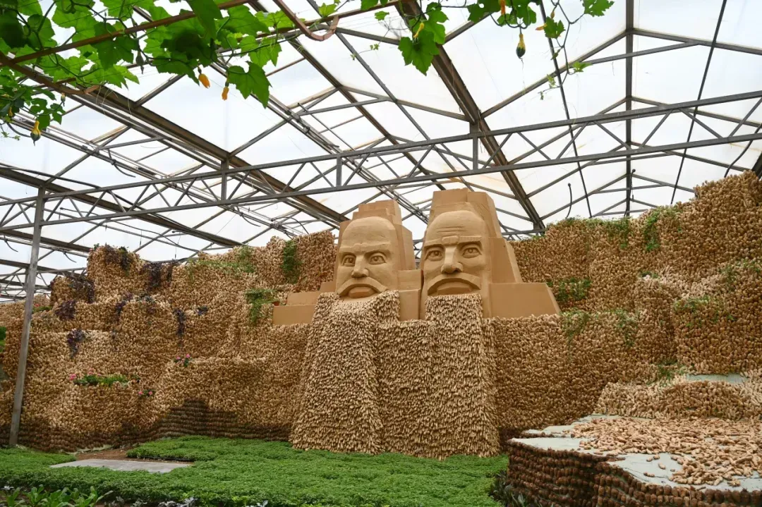 面积10000平方米,为蔬菜文化艺术展示馆。八号馆蔬菜文化艺术展示馆今年以“新时代大美中国的壮丽画卷”为主题,以长江、黄河、长城、长征、大运河五大国家文化公园为线索,巧妙雕刻、挂果、粘贴、扦插、彩绘等多种艺术手法,打造“大美中国”“鱼跃龙门”“江山多娇”等一系列气势恢宏、寓意深远的文化景观。不仅展示了中国大地的壮美与多姿,更在细节中传递出深厚的文化底蕴和民族精神。