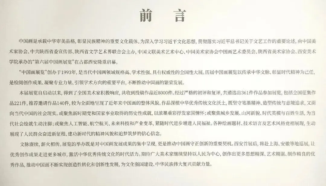 2026年4月8日上午,由中国美术家协会、中共陕西省委宣传部、陕西省文学艺术界联合会主办,中国文联美术艺术中心、中国美术家协会中国画艺术委员会、陕西省美术家协会、西安美术学院承办的第六届中国画展览在西安美院美术馆开幕。