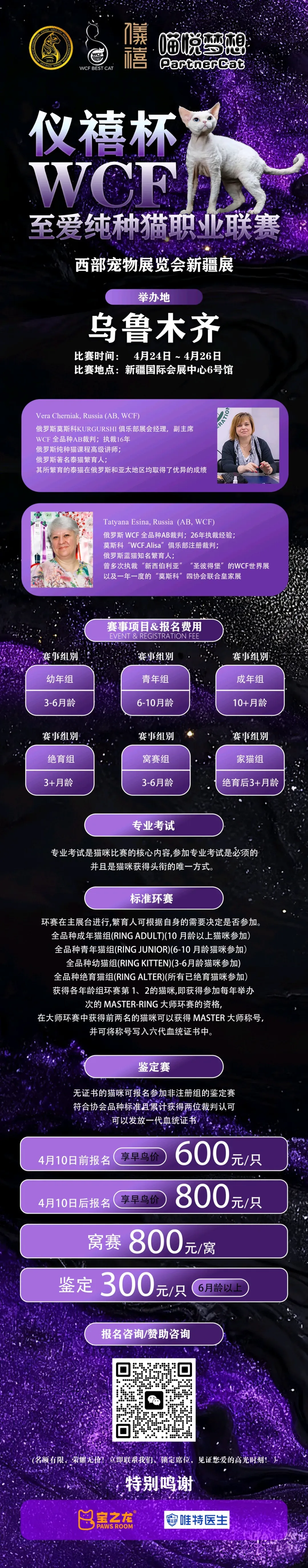 据最新消息,沈阳暖悦猫咪馆、奉天法老纯种猫舍、安生猫舍、玖命猫舍、Lyttle Wave、暖绒绒猫舍、遇见 你的猫猫舍等等,将集中亮相WCF猫赛!到底谁家的猫血统纯正、品相出众、经典稀缺?敬请期待!西部宠物展新疆展 | 顶级驾到:全疆首届WCF猫赛来啦!今起报名