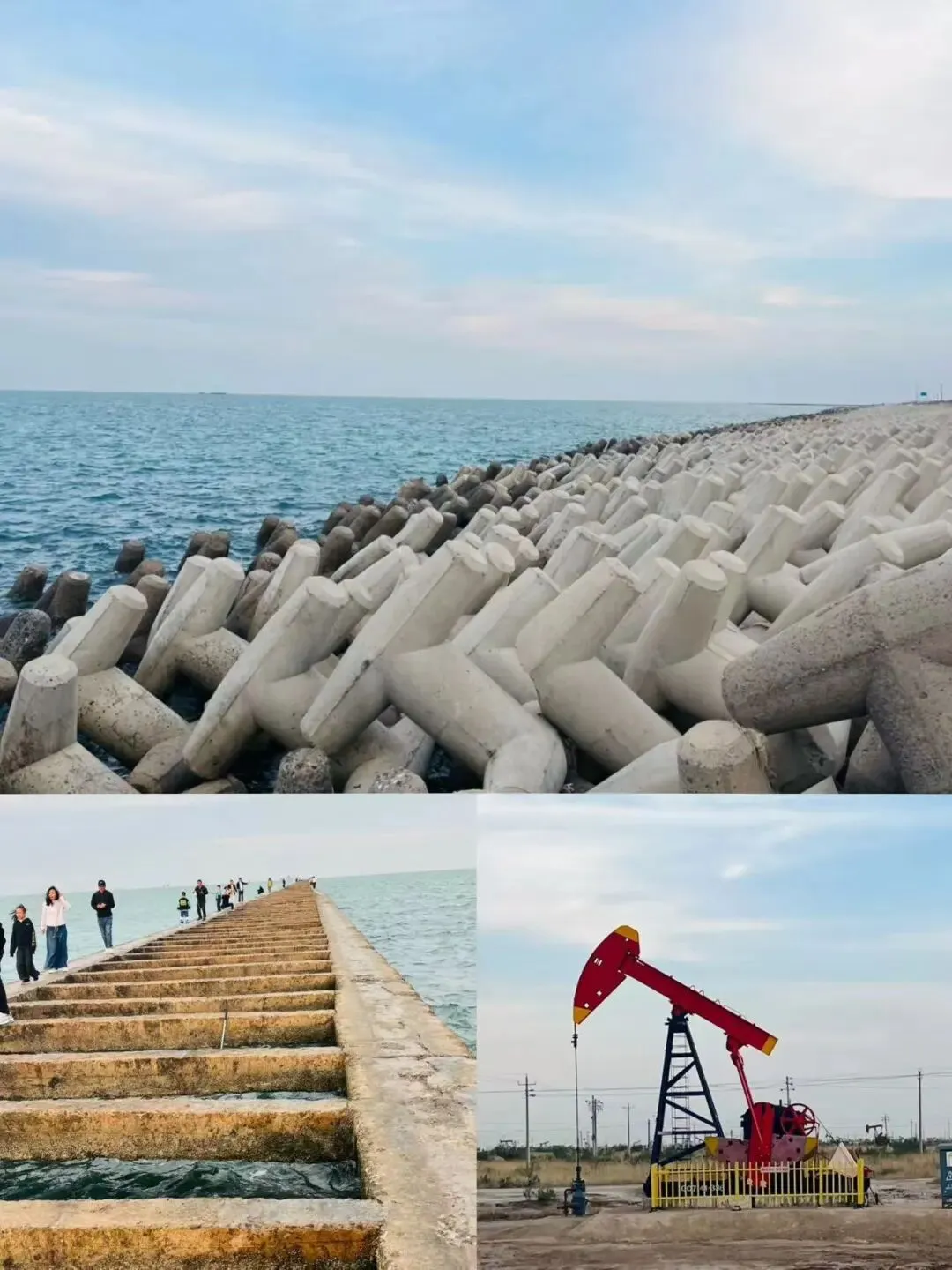 海上长城、油田磕头机、渤海日落、免费赶海,网红拍照圣地