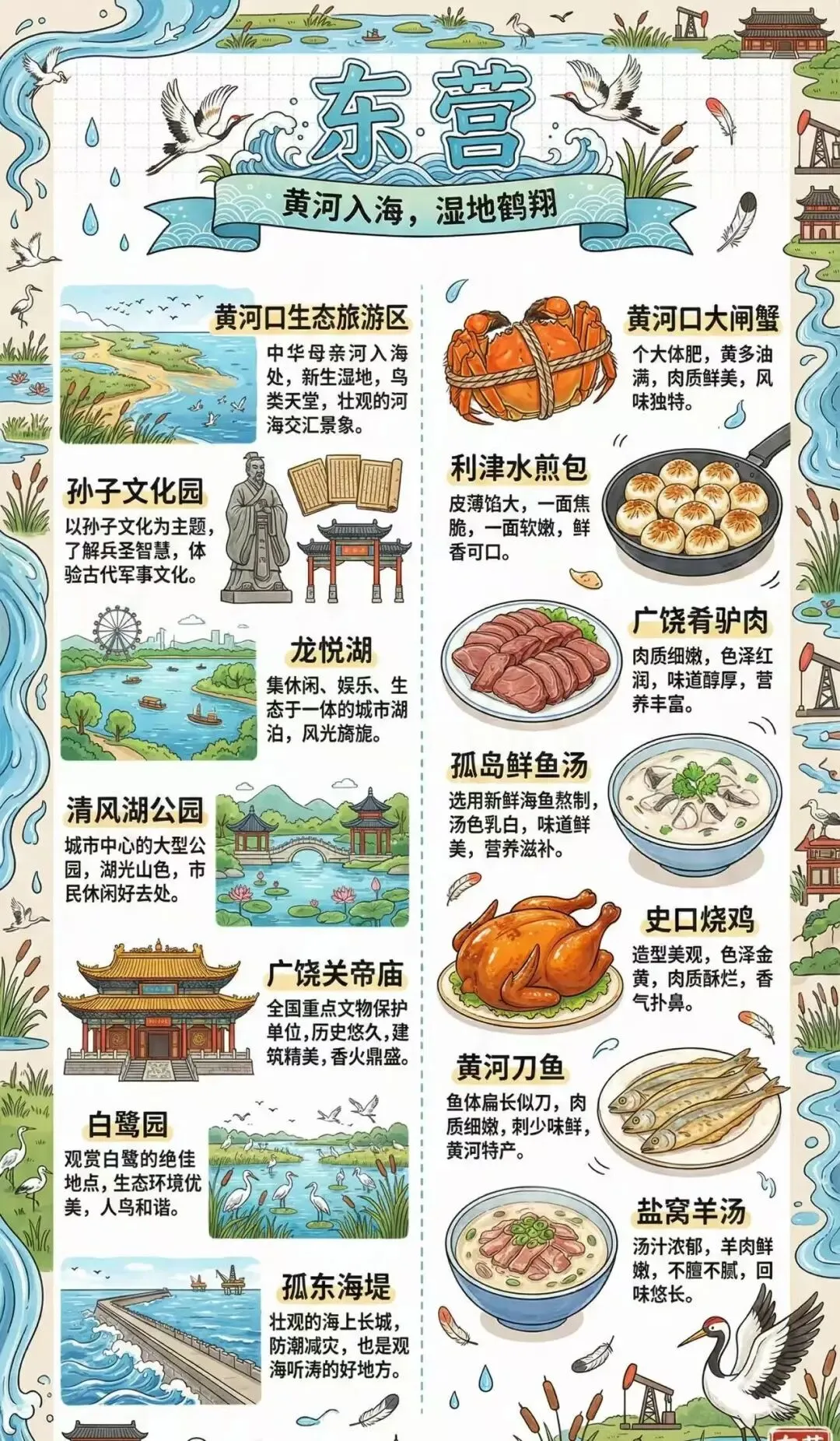 • 美食:利津水煎包(非遗早餐)、北岭丸子