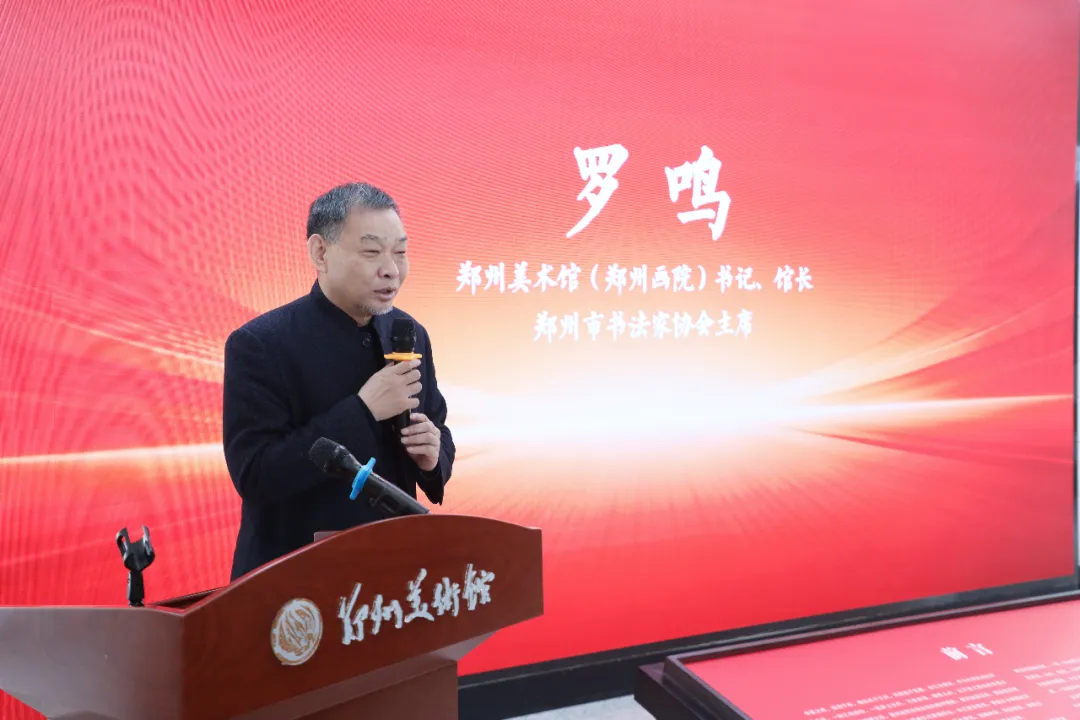 郑州美术馆(郑州画院)书记、馆长,郑州市书法家协会主席罗鸣致欢迎辞。他首先对各位领导嘉宾的到来表示欢迎和感谢,并谈到此次活动是长江文化和黄河文化的共建交流、相互借鉴、相互学习。郑州美术馆(郑州画院)始终践行国家黄河战略,持续开展黄河文化美学研究,相关成果入选文旅部、中国国家画院“灿若星河”展览扶持项目并进京展出。2023年,郑州画院“大河意象”黄河文化美学研究项目在江苏太仓展览期间,获得了马鞍山市文化馆屠也老师的高度认可,经与马鞍山市文化馆周霍祁馆长多次沟通磋商,促成此次联展。马鞍山历史悠久、人文荟萃,此次两地艺术交流意义深远,望于今秋携作品赴马鞍山巡展,感受长江的博大与壮美。