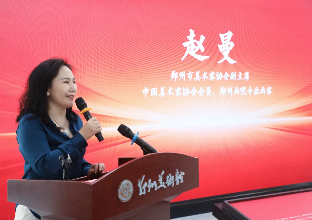 郑州市美协副主席、郑州画院艺术家赵曼在致辞中对各级领导给予展览的大力支持表示感谢,并向远道而来的马鞍山艺术家一行致以热烈欢迎。她谈到,马鞍山艺术家们功底扎实、创作精良,参展作品精心打磨、诚意满满,双方在交流中互学互鉴、启迪思路,有效汲取了新的艺术观念与表现手法。期待以本次展览为起点,以艺术为媒,在长江与黄河的文脉传承中开展长期对话、实现深度交融。