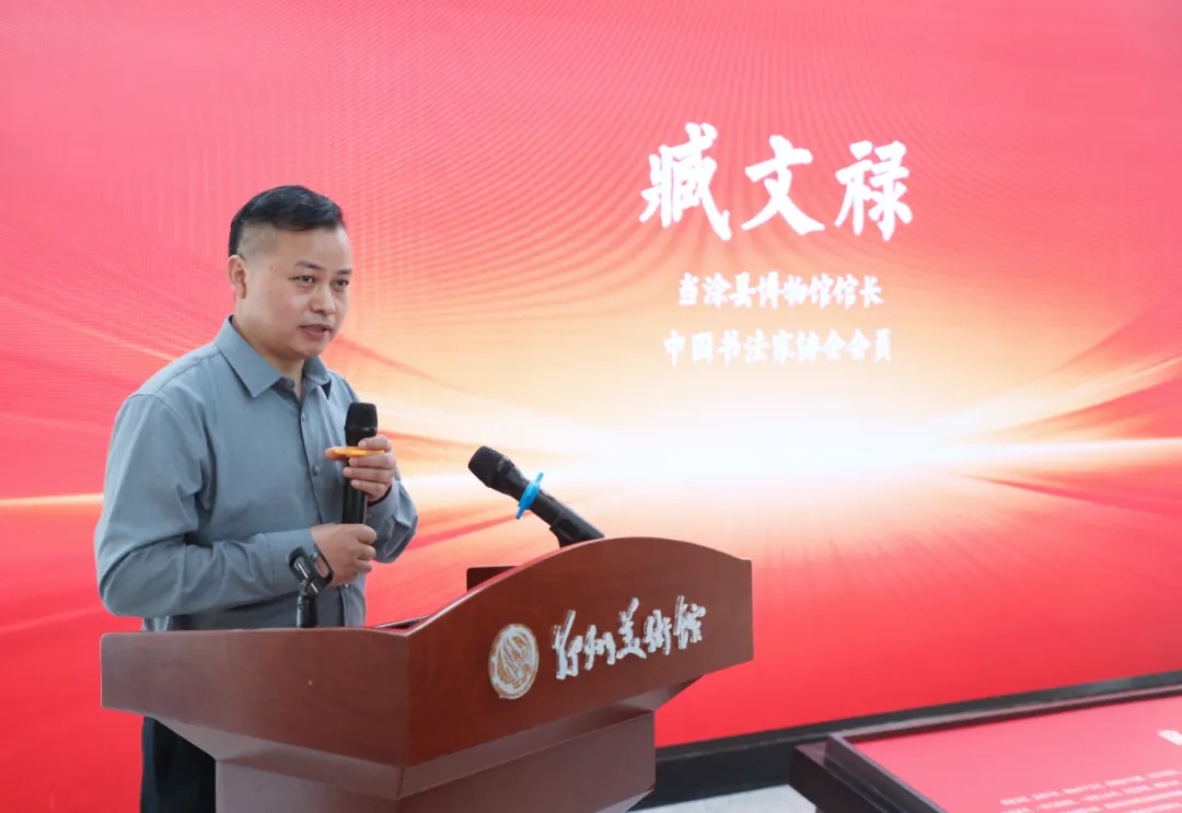当涂县博物馆馆长、中国书法家协会会员臧文禄表示,今年恰逢马鞍山建市70周年,在这一具有特殊意义的年份举办此次书画联展,更显价值深远。他在致辞中以诗仙李白所代表的长江文化与浪漫风骨,与杜甫所承载的黄河文化和沉雄气韵为喻,生动诠释了两大流域艺术的深厚交融。期待豫皖两地文艺界常来常往、深化交流,并诚挚邀请郑州各位领导与艺术家朋友前往马鞍山、当涂做客采风、共话艺术。