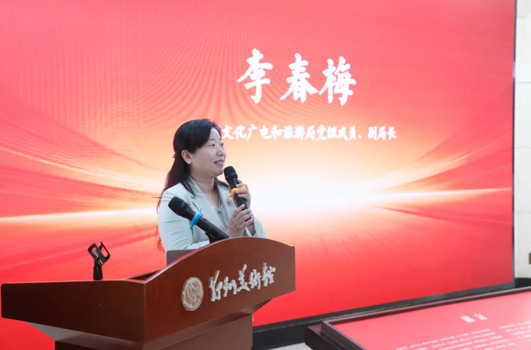 郑州市文化广电和旅游局党组成员、副局长李春梅宣布“江河同源——首届长江与黄河文化主题书画联展”正式开幕!