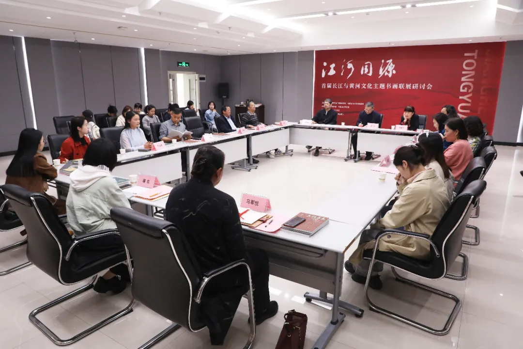 观展结束后,“江河同源——首届长江与黄河文化主题书画联展”学术研讨会在郑州美术馆瑞达分馆二楼多功能厅召开。