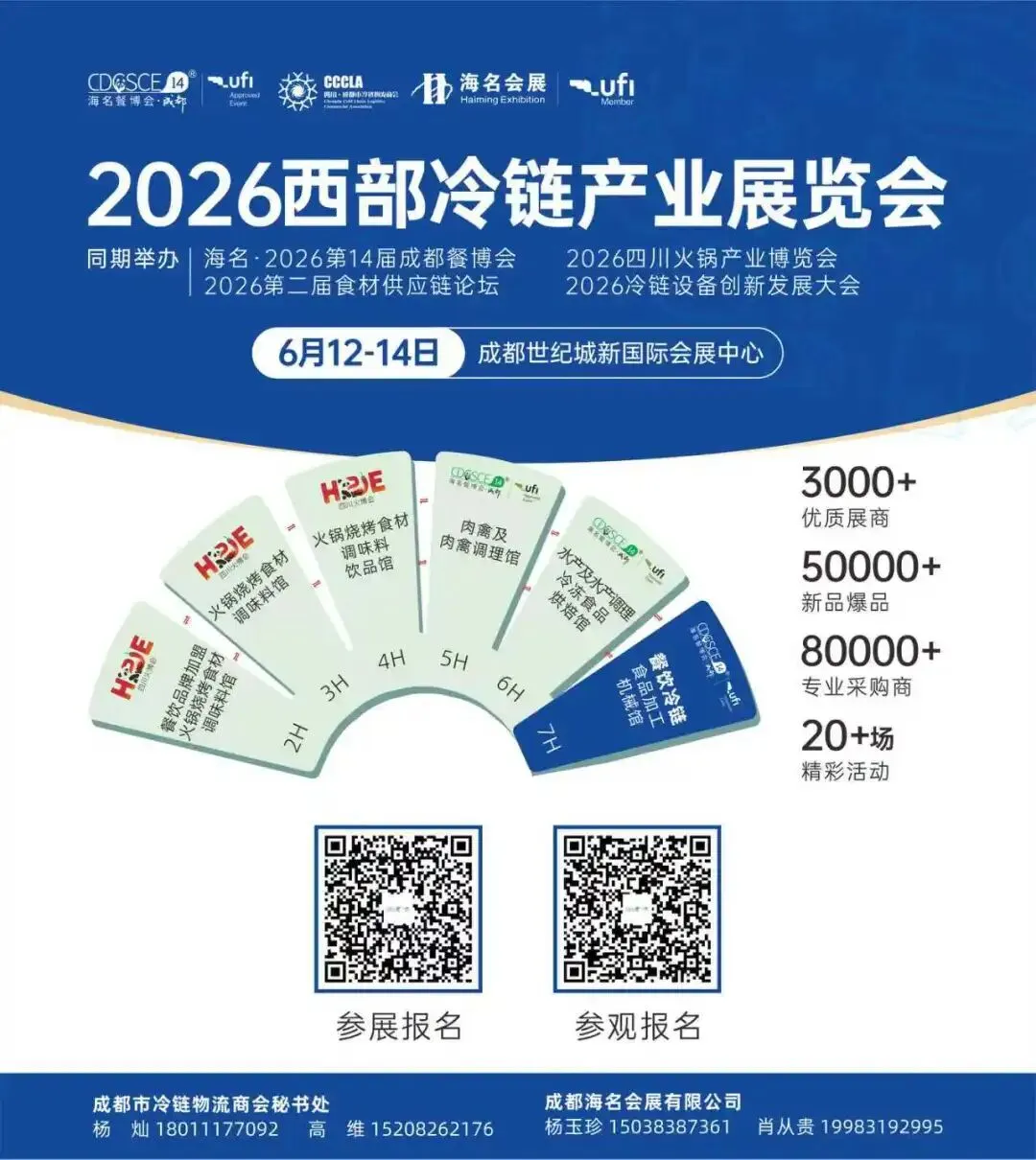 6月12-14日,由成都市冷链物流商会与成都海名会展联合主办的西部冷链产业展将在成都世纪城新国际会展中心开展,依托成渝地区冷链产业发展东风,精准搭建供需对接平台。恰逢《2026年共建成渝地区双城经济圈重点项目名单》公布,9大冷链重点项目同步开建,展会也必将成为企业未来对接新建项目采购、链接现有园区升级需求的核心窗口,助力企业抢占西部冷链红利。