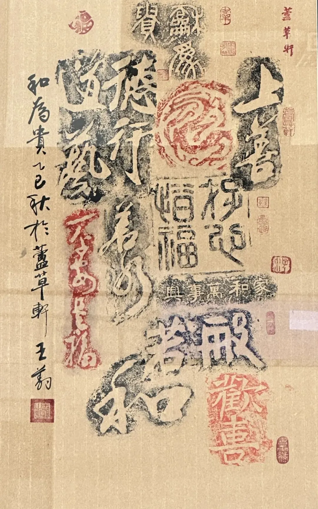 无笔画依托水墨自然晕染交融,随性写意、浑然天成;砖刻拓片则深耕传统文化底蕴,将古砖雕刻的古朴纹饰、文字印记通过拓印技艺完美留存,线条苍劲厚重,承载着历史文脉与传统金石韵味,实现了古法技艺与当代审美的完美契合。