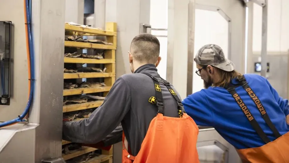 在传统生产模式中,鳕鱼加工依赖大量人工操作。工人每天需要搬运和堆叠数吨鱼类,将其放置在干燥托盘上,劳动强度大且容易造成身体损伤。