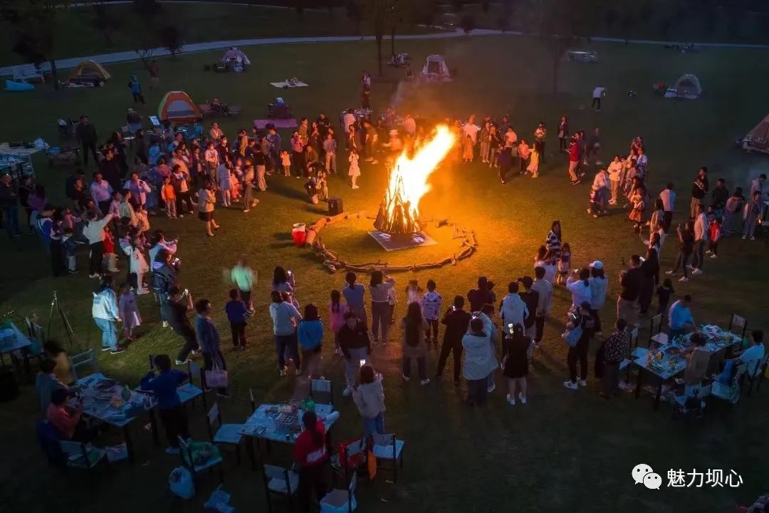 活动现场设置了露营专区、烧烤专区、土特产专区、酒水专区、亲子游戏互动专区、汉服礼乐展演区、户外相亲交友区等多个活动区域。同时邀请了乐队现场演唱,还有摸小鱼、吃西瓜、喝啤酒、亲子寻宝等多种有奖比赛。最后活动将会在绚烂的烟花表演、篝火晚会中落下帷幕。
