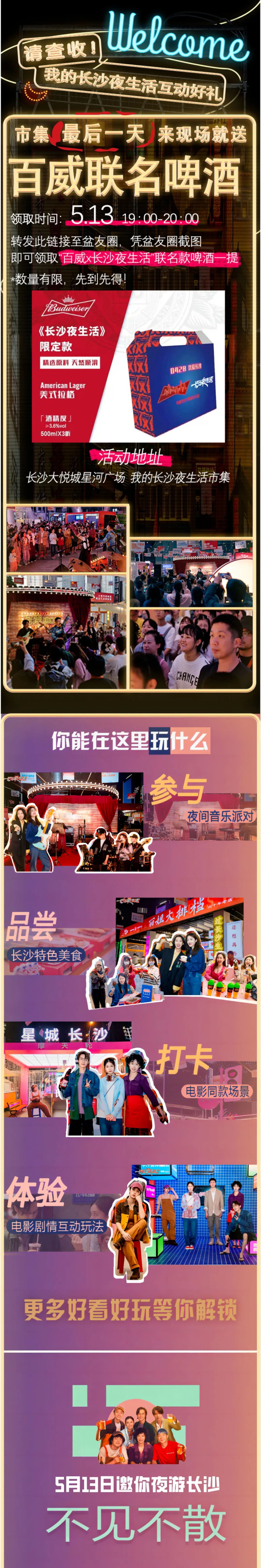 请查收!我的长沙夜生活市集X百威联名款啤酒互动礼免费送!